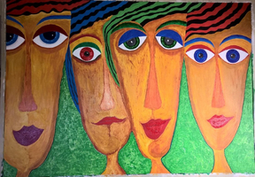 Vier Frauen 1,00x1,40 mit Rahmen