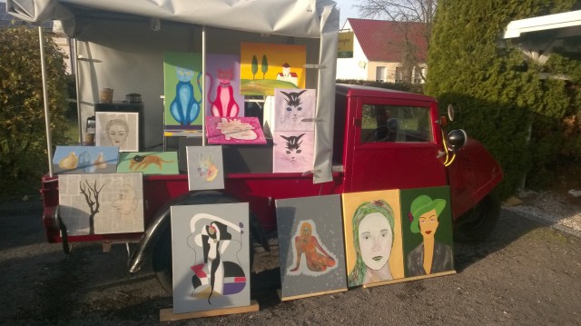 Unser mobiles Kunstkaffee ist ein Hanseat / Tempo, Baujahr 1934. Seine Erstzulassung war am 22.06.1936 in Nauen. Er ist Fahrbereit aber die Fahrtüchtigkeit ist stark eingeschränkt. Zu Kunstmärkten nehmen wir ihn auf einen Hänger und bringen ihn zum Einsatzort. Zu den Bildern bieten wir unseren Besuchern auch Kaffeespezialitäten an. So kann der Kunde sich bei einen Cappuccino in aller Ruhe die Bilder und den Oldtaimer ansehen.